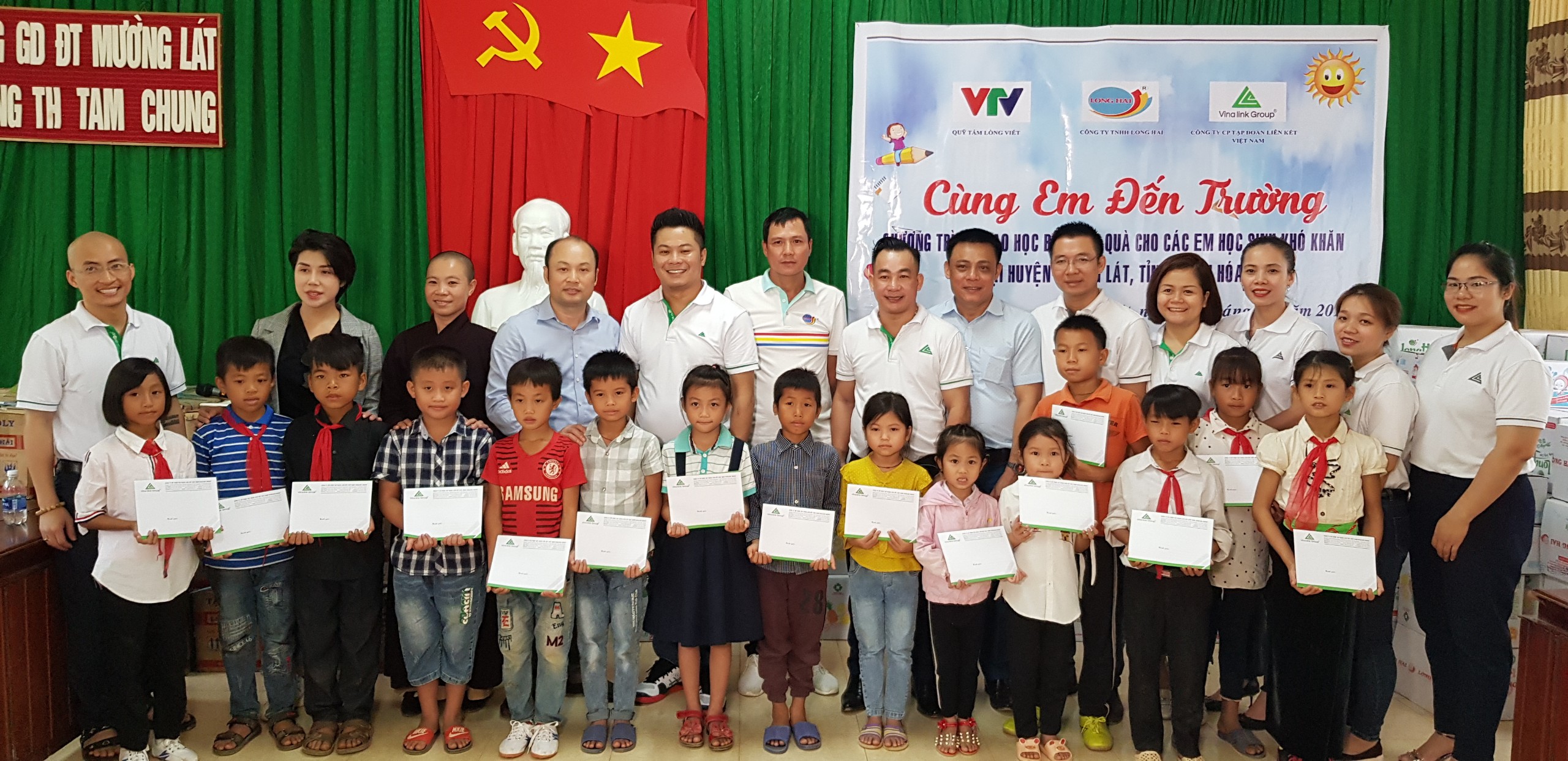 Tại chương trình, Tổng Giám đốc Nguyễn Đức Anh, Phó Tổng Giám đốc Trương Sơn Hà cùng đại diện các thủ lĩnh các hệ thống NPP đã thay mặt cho Vinalink Group trao tặng 40 phần học bổng động viên và khích lệ tinh thần hiếu học của các em học sinh là con em đồng bào dân tộc Mường đang theo học tại 3 điểm trường: Trường Tiểu học Tam Chung, Trường Tiểu học Mường Lý, Trường Tiểu học Mường Chanh. Đồng thời, BLĐ công ty cùng đoàn CBNV và các thủ lĩnh hệ thống cũng đã đến tận nơi thăm hỏi và tặng quà cho em Lò Văn Việt, là học sinh có hoàn cảnh đặc biệt khó khăn vươn lên trong học tập đang theo học tại Trường Tiểu học Tam Chung, Mường Lát, Thanh Hoá.