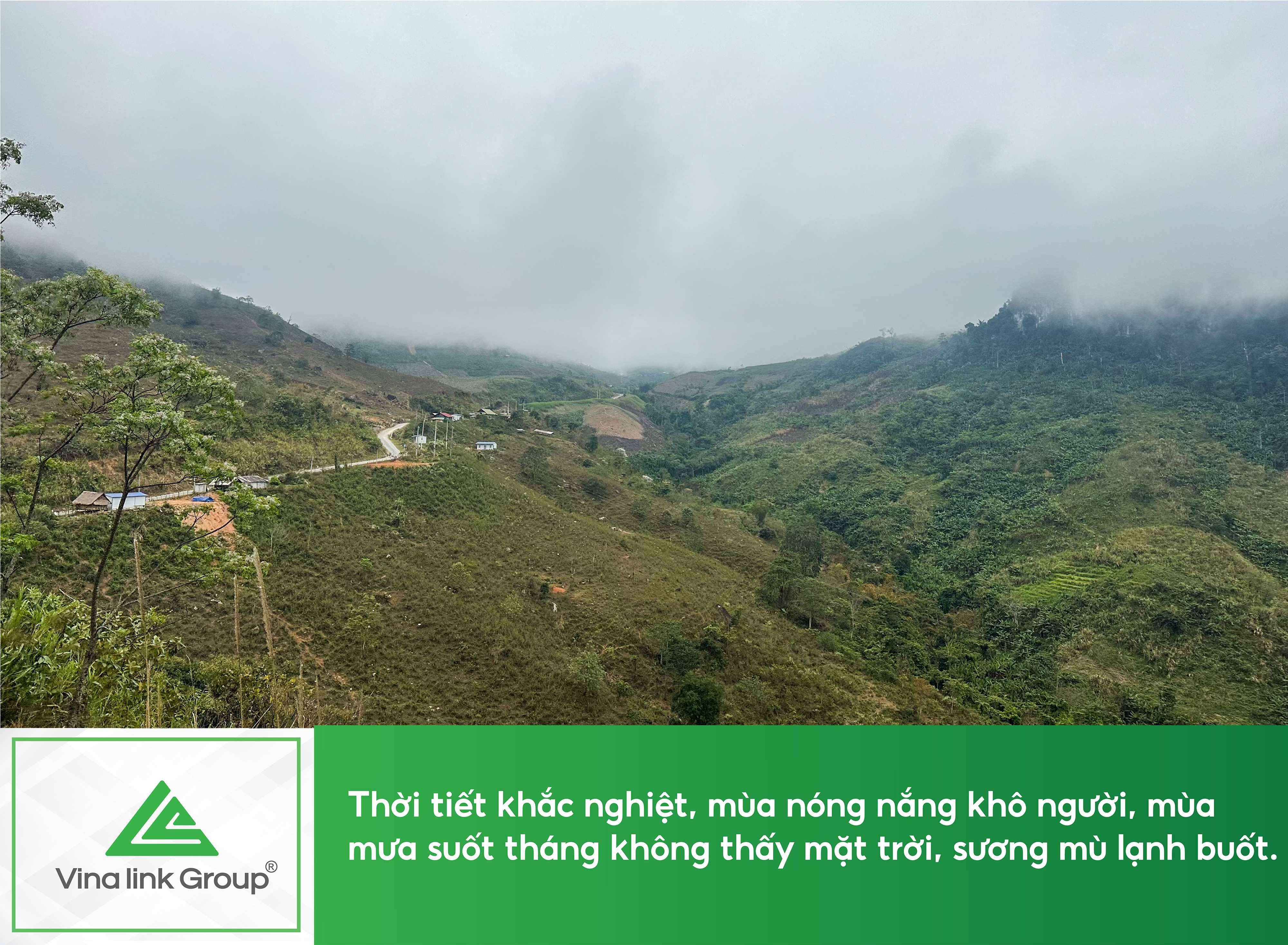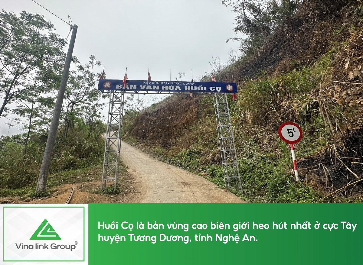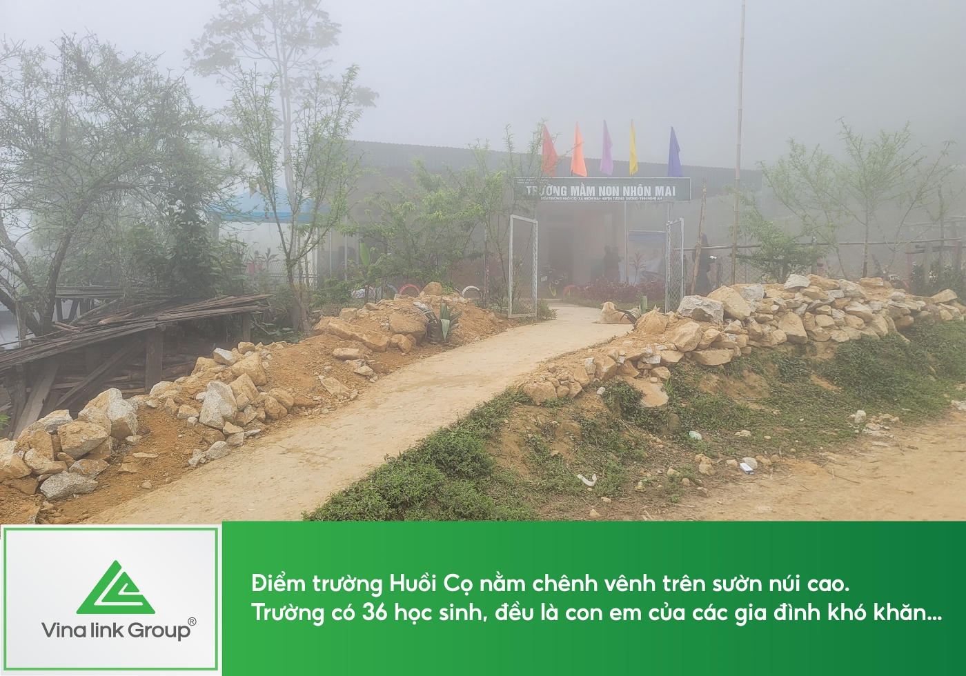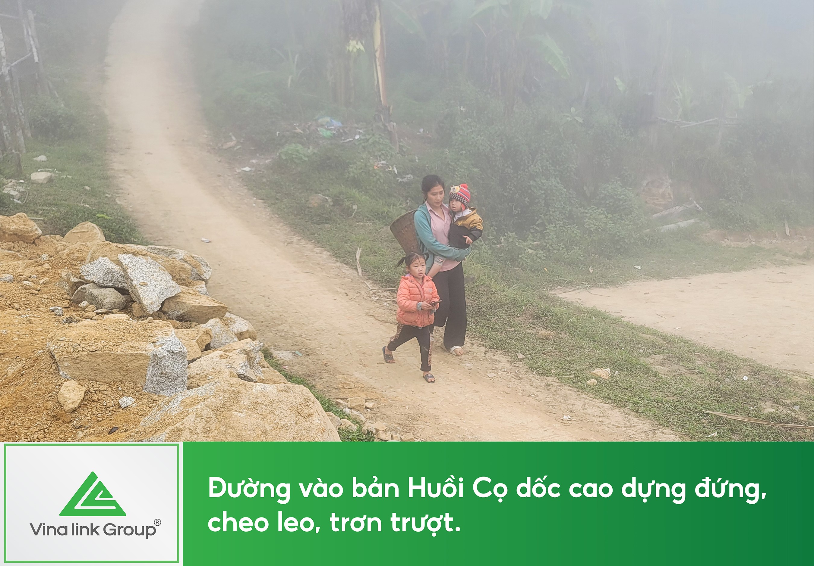 Huồi Cọ ngày Đoàn công tác của Vinalink Group đến mưa rả rích, giá lạnh bao trùm khiến bản làng thêm heo hút. Đường vào bản Huồi Cọ cheo leo, dốc cao dựng đứng.