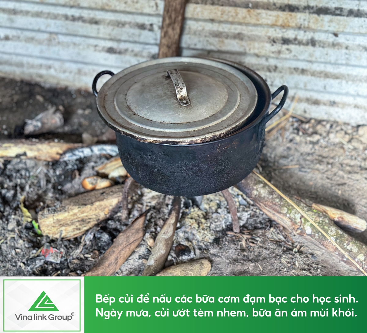 Trẻ con trong bản lớn lên, đời nối đời sống bấp bênh trên đá. Điểm trường Huồi Cọ đã nhiều năm thiếu bếp ăn. Bếp chỉ là gian nhà gỗ đã cũ, dựng tạm bợ, gió lọt khe, mưa ướt củi khiến những bữa ăn sơ sài cũng ám mùi khói…