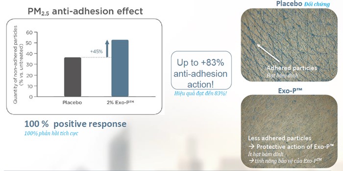 Exo-P™ làm giảm độ bám dính của PM2.5 trên da.