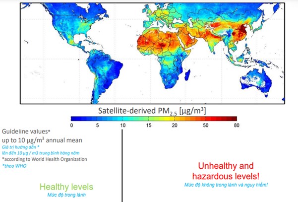 Bản đồ phân bố PM2.5 trên toàn thế giới.
