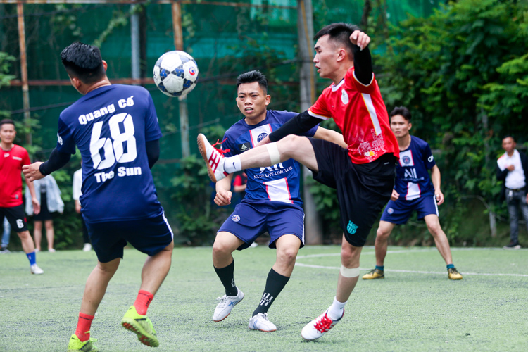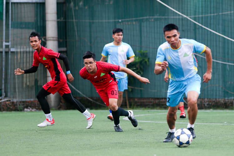 Các cầu thủ lên bóng với lỗ lực ghi bàn cho đội nhà