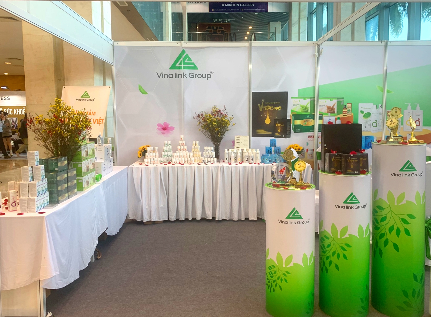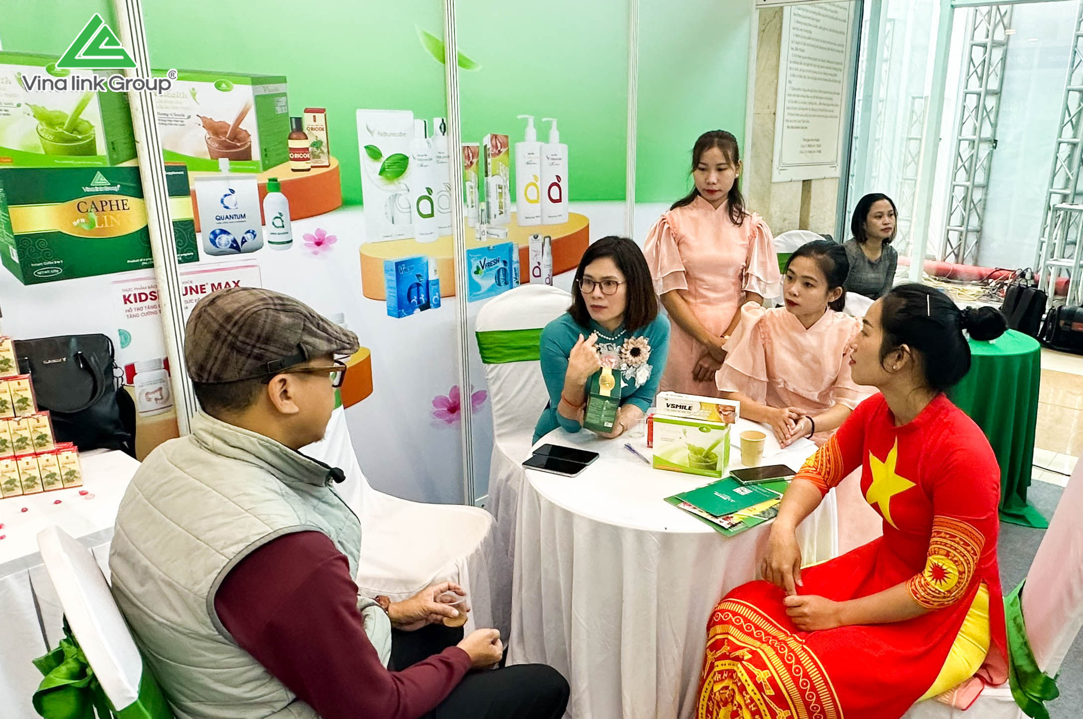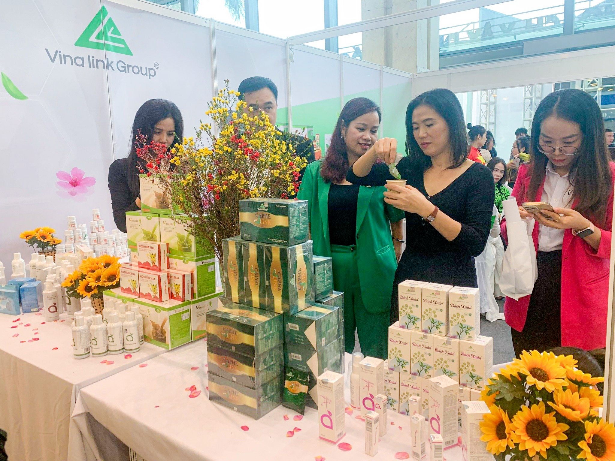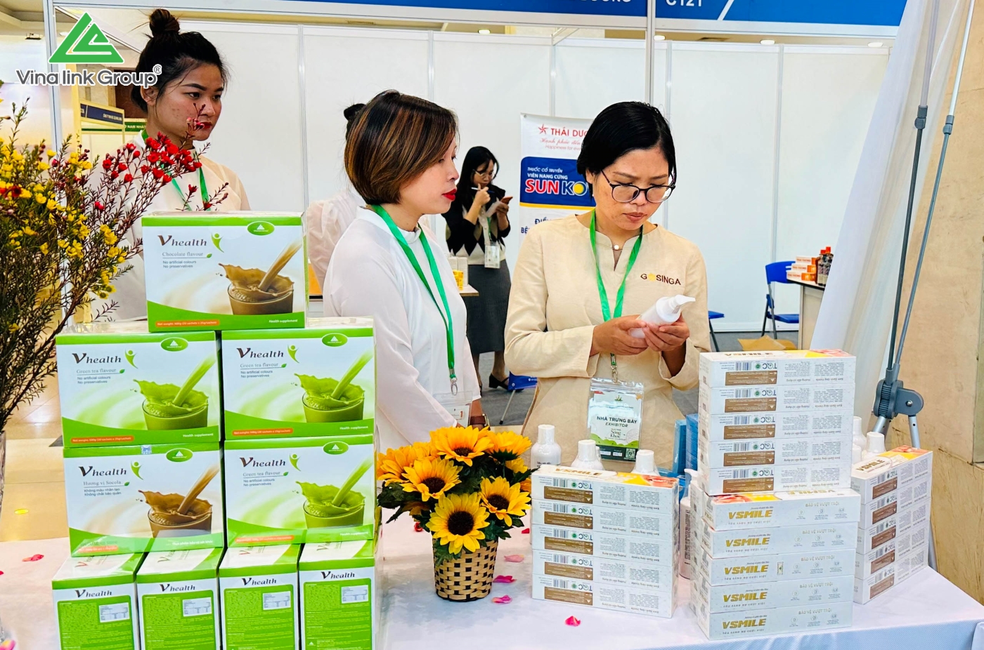 Là một trong những doanh nghiệp Việt có mặt tại triển lãm, Vinalink Group đã giới thiệu đến người tiêu dùng rất nhiều sản phẩm chăm sóc sức khỏe chất lượng hàng đầu, thuộc 04 nhóm chính: Nhu cầu thiết yếu, Dinh dưỡng hàng ngày, Hỗ trợ điều trị bệnh và Mỹ phẩm.