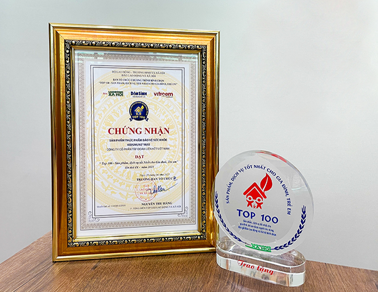 Kỷ niệm chương và chứng nhận giải thưởng "Top 100 - Sản phẩm, dịch vụ tốt nhất cho gia đình và trẻ em"