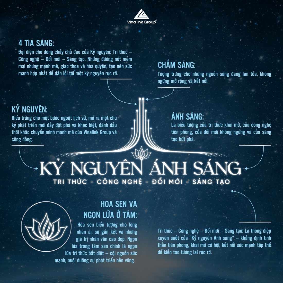 Năm 2025, Vinalink Group chính thức tổ chức đại sự kiện tôn vinh mang tên “Kỷ Nguyên Ánh Sáng” – dấu mốc hội tụ tinh hoa từ 4 sự kiện trước đó: Đất – Nước – Khí – Lửa, để cùng nhau khai mở một kỷ nguyên mới rực rỡ.