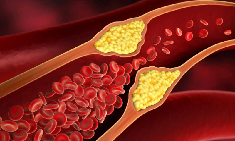 Chất béo bão hòa và cholesterol có thể được tìm thấy trong thịt đỏ, da động vật, thực phẩm chế biến sẵn và các sản phẩm từ sữa nguyên kem. Khi tiêu thụ quá nhiều, những chất này có thể tích tụ trong máu, hình thành mảng bám trong động mạch và làm hẹp lòng mạch.