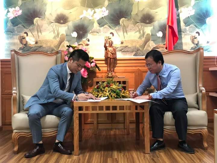 Tổng Giám đốc Công ty Cổ phần Tập đoàn Liên kết Việt Nam Vinalink Group Ông Nguyễn Đức Anh (bên trái) ký thoả thuận hợp tác với đối tác Giám đốc Công ty TNHH Y Dược Quốc tế IMC Ông Hoàng Tuấn Huy (bên phải)