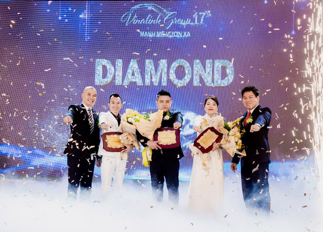 Khoảnh khắc tôn vinh trang trọng đó vừa là đánh dấu bước phát triển trong hệ thống, cũng vừa là động lực để các NPP tiếp tục vươn xa hơn nữa trong chặng đường phát triển của mình. Và cuối cùng là hình ảnh rực rỡ, sáng chói của những viên kim cương trên bầu trời Vinalink Group. Họ chính là những nhà lãnh đạo hệ thống xuất sắc, là những thủ lĩnh dẫn dắt đội nhóm lớn hoạt động tại các thị trường, hội tủ đủ bản lĩnh - trí tuệ và kinh nghiệm để ngày hôm nay đã chính thức bước chân vào đội ngũ lãnh đạo hệ thống, chinh phục cấp bậc Diamond.