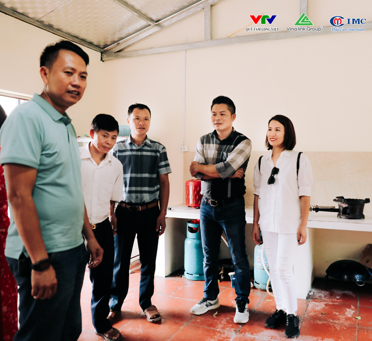 Tổng Giám đốc Vinalink Group cùng phu nhân tham quan căn bếp mới xây xong cho các em nhỏ