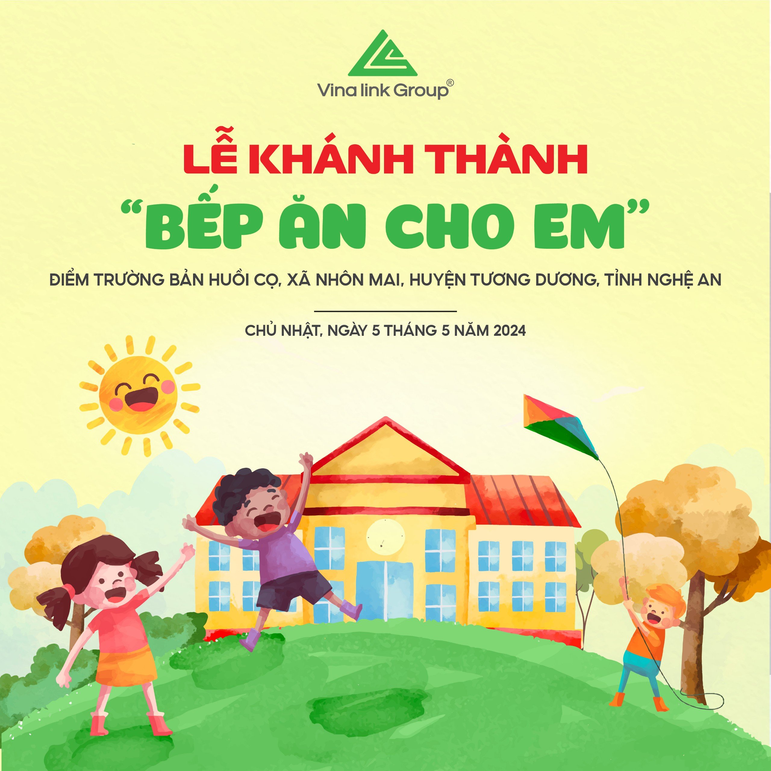 Ngày 05/05/2024, Vinalink Group sẽ chính thức khánh thành, bàn giao và đưa vào sử dụng “Bếp ăn cho em” tại Điểm trường mầm non Huồi Cọ, xã Nhôn Mai, huyện Tương Dương, tỉnh Nghệ An.