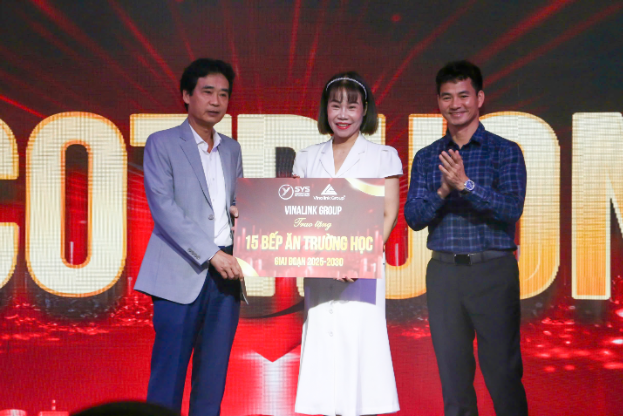 Đại diện Vinalink Group trao bảng cam kết tặng 15 bếp ăn cho trường học giai đoạn 2025 – 2030.