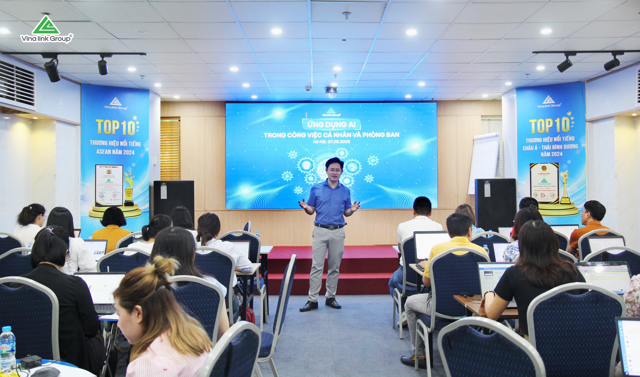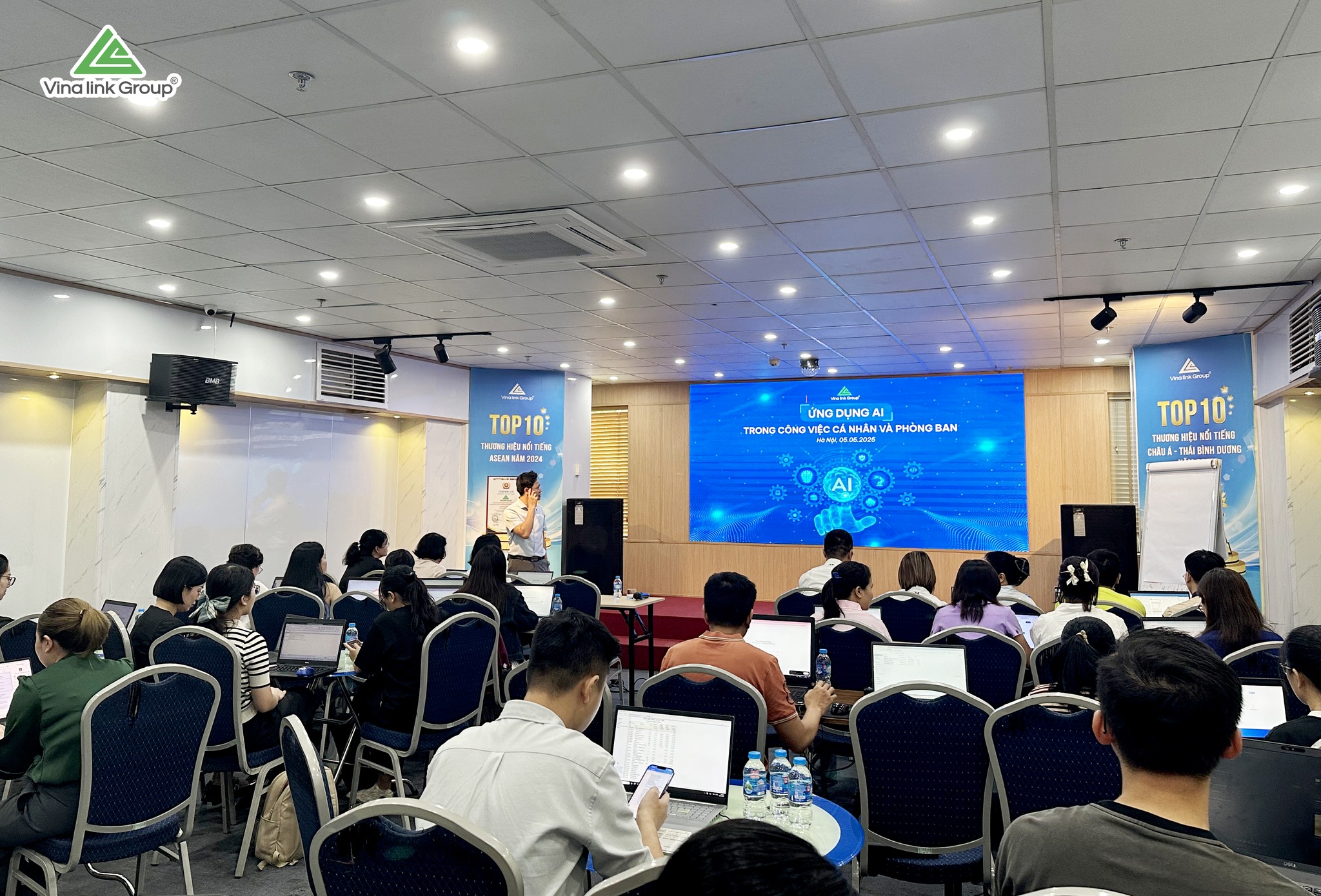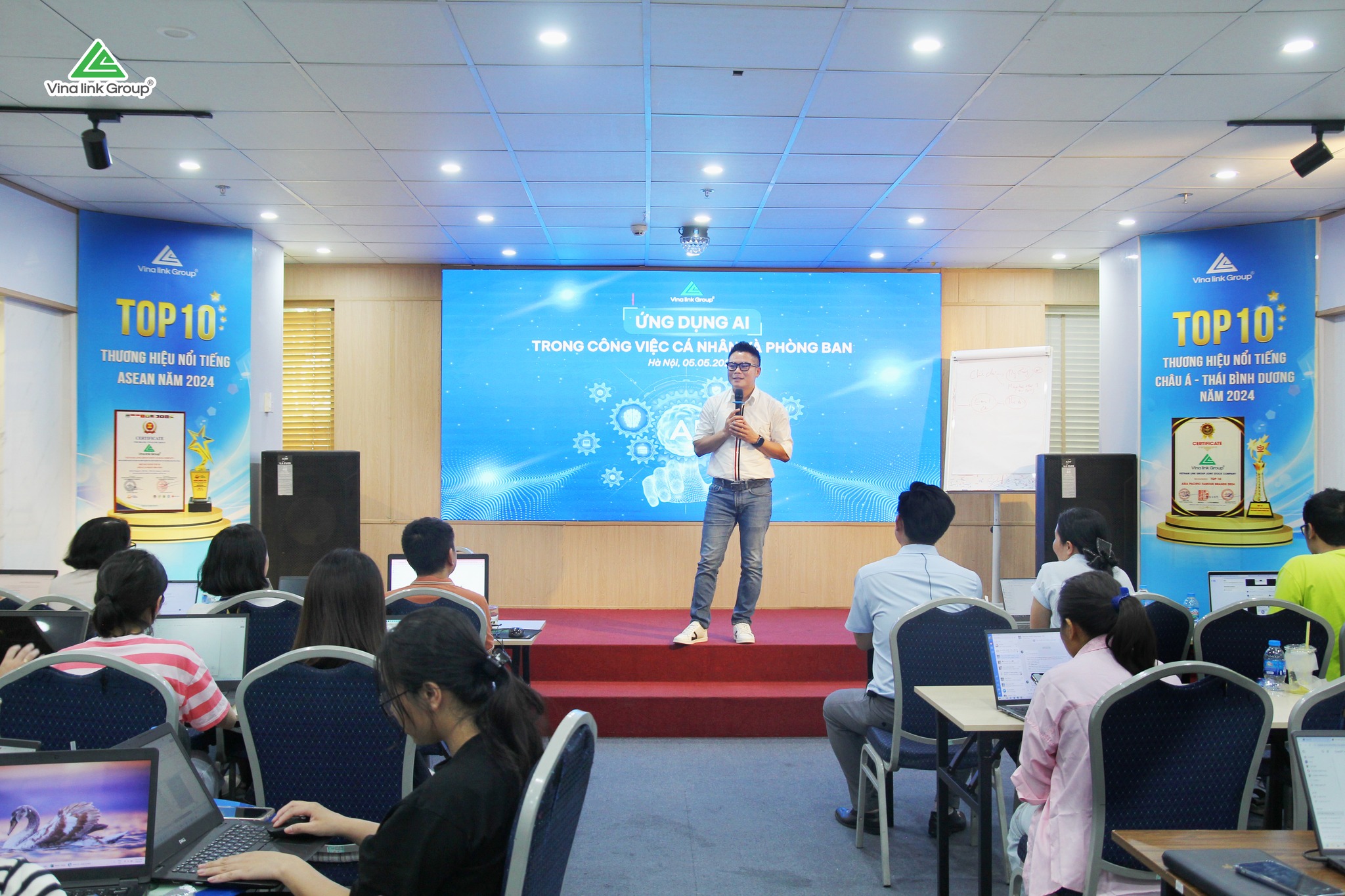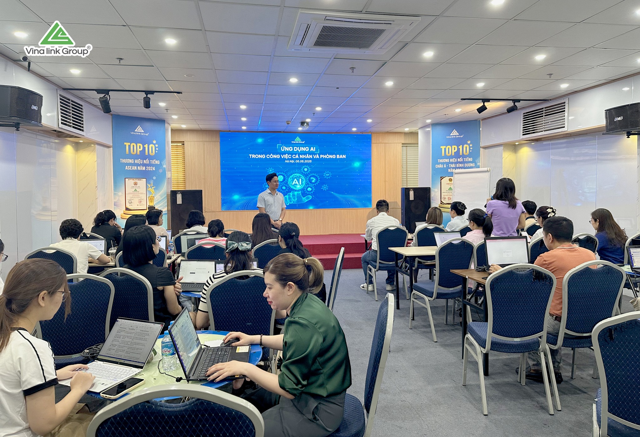 Trong bối cảnh cuộc cách mạng công nghệ số diễn ra mạnh mẽ trên toàn cầu, Vinalink Group tiếp tục khẳng định vai trò là một trong những doanh nghiệp tiên phong khi tổ chức chuỗi đào tạo chuyên sâu về ứng dụng trí tuệ nhân tạo (AI) dành cho toàn thể cán bộ nhân viên. Các buổi đào tạo diễn ra trực tiếp tại hội trường tầng 2, trụ sở chính Vinalink Group, trong đầu tháng 5/2025.