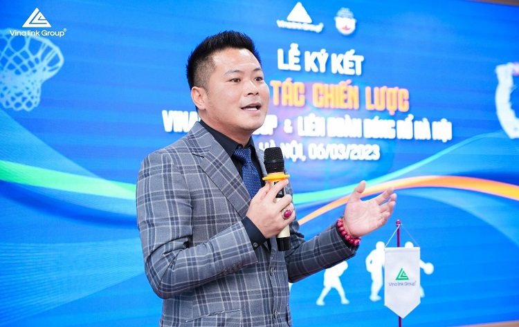- Vina link Group đã đồng hành cùng Liên đoàn Bóng rổ Hà Nội kể từ những ngày đầu thành lập, sản phẩm Vina link Group là nước giàu Hydrogen Quantum cũng đã tài trợ trong nhiều giải đấu, hỗ trợ các vận động viên trong quá trình thi đấu. Nhưng tôi muốn nhấn mạnh “chiến lược” trong buổi lễ ký kết này là bởi vì sắp tới chúng tôi sẽ hỗ trợ các vận động viên nhiều hơn nữa. Chúng tôi đã nghiên cứu và sắp cho ra mắt trên thị trường dòng sản phẩm chuyên biệt cho vận động viên thể thao, đó là sản phẩm được nghiên cứu trên thể trạng người Việt, bổ sung năng lượng cho các vận động viên thi đấu.