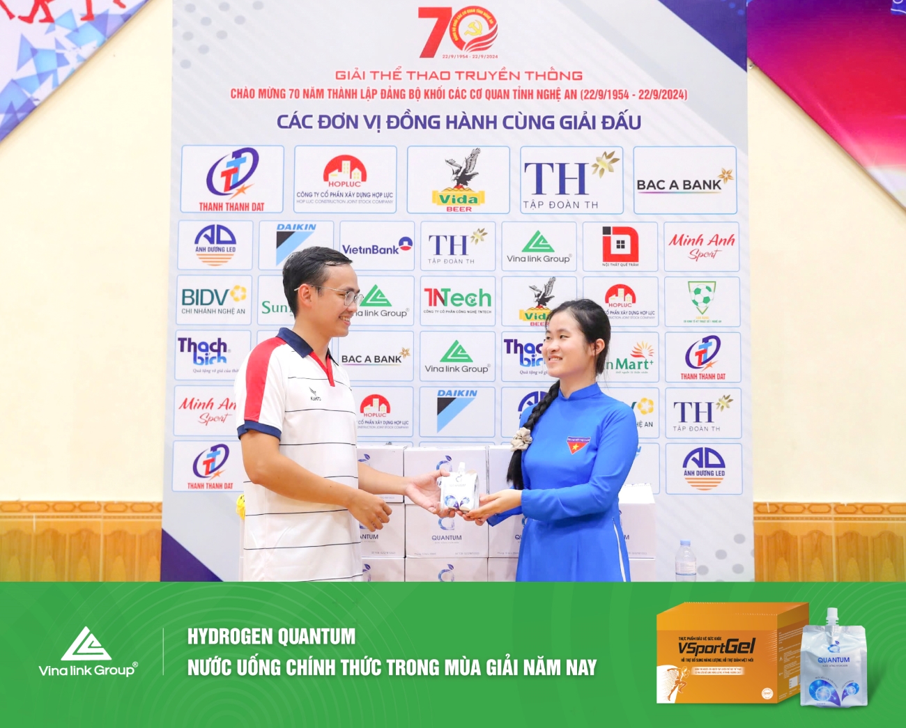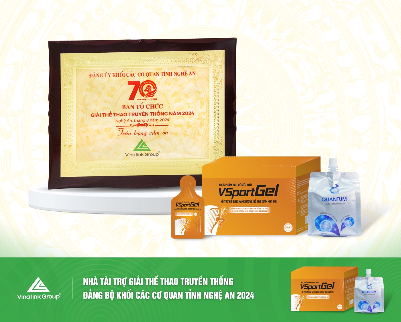 Vinh dự là Nhà tài trợ cho giải đấu năm nay, với 2 sản phẩm bổ trợ sức khỏe VSportGel và Quantum, Vinalink Group mong muốn chung tay thúc đẩy phong trào “Toàn dân rèn luyện thân thể theo gương Bác Hồ vĩ đại”, lan tỏa lối sống lành mạnh, vận động thể thao tích cực và chủ động chăm sóc sức khỏe tới cộng đồng.