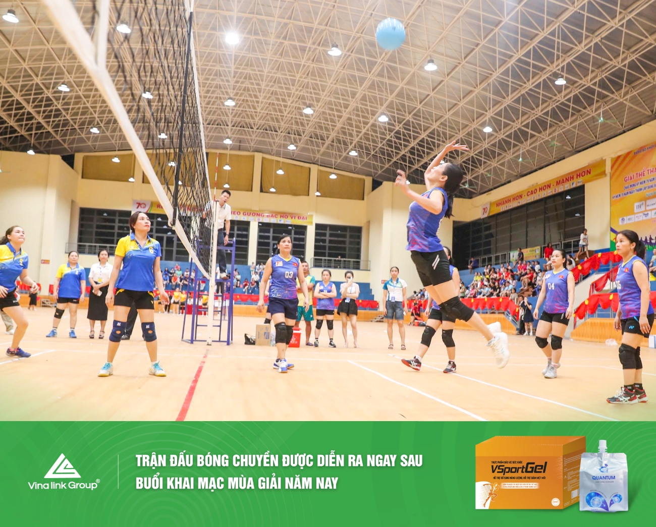 Giàu năng lượng và khoáng chất, 02 sản phẩm đẳng cấp hàng đầu của Vinalink Group là Thực phẩm bảo vệ sức khỏe VSportGel và Nước uống hydrogen Quantum được vinh dự đồng hành, góp phần tiếp sức và bổ sung năng lượng dồi dào, giúp các vận động viên bứt phá thành tích cá nhân, kiến tạo mùa giải thành công vang dội.
