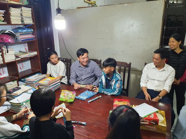Chủ tịch Nguyễn Xuân Hoàng thăm hỏi động viên các em nhỏ